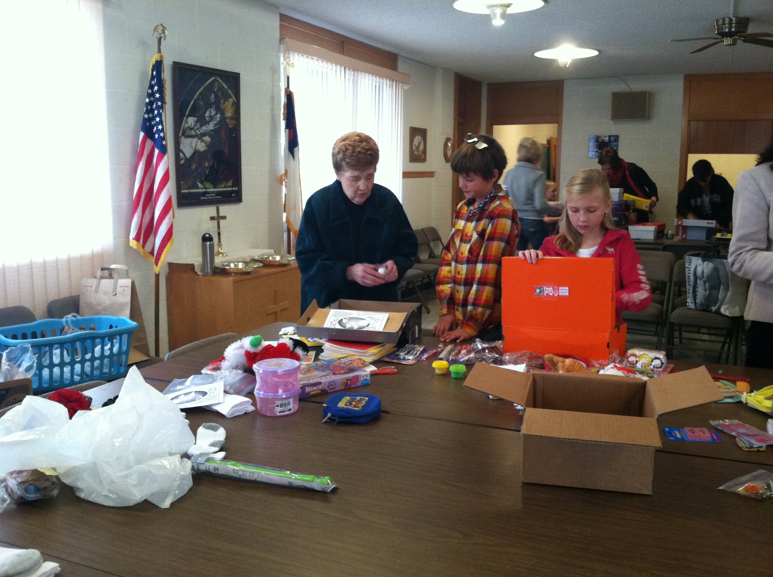For the last month, we’ve been collecting shoeboxes and all sort of things to stuff in the shoeboxes at Red Oak Grove. Pencils and markers and stuffed animals and toothbrushes and all sorts of stuff filled our collection baskets and this past Sunday, we completed the service project for Operation Christmas Child.
